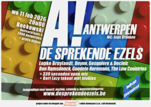 Ga terug naar events woensdag 11 februari 20:00 Boekowski Bolivarplaats 4 2000 Antwerpen # 110225 De Sprekende Ezels Antwerpen